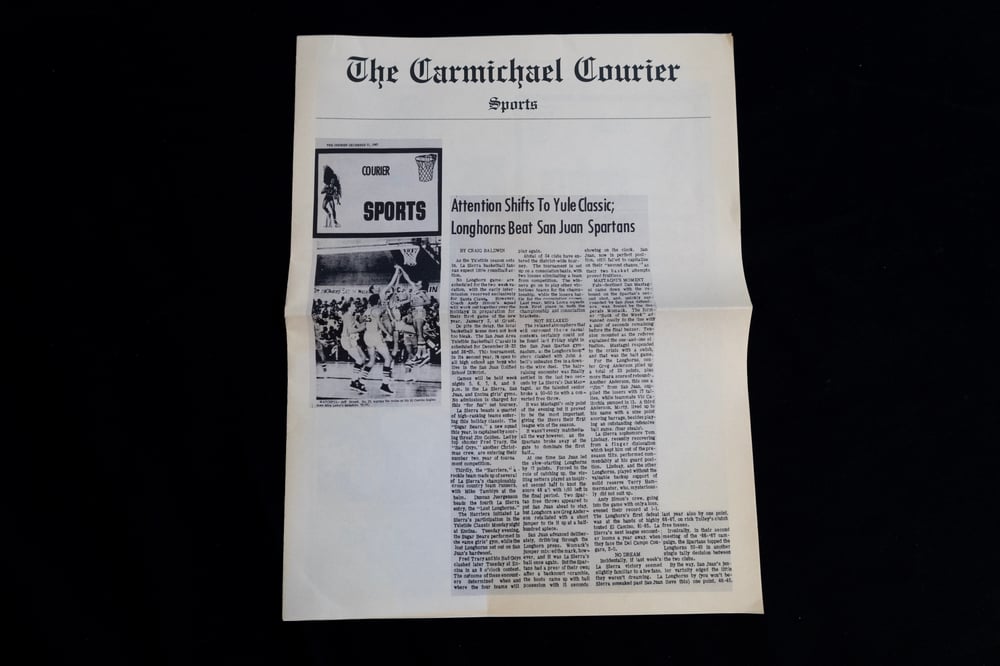 - A newspaper containing Selected Sportswriting from The Carmichael Courier (1967-69) by Craig Baldwin;